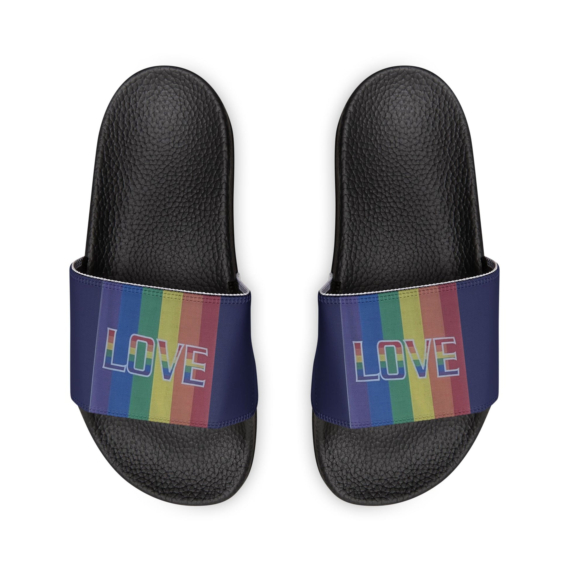 Pride 'LOVE' Rainbow Strap Slide Sandals — Men's dark blue