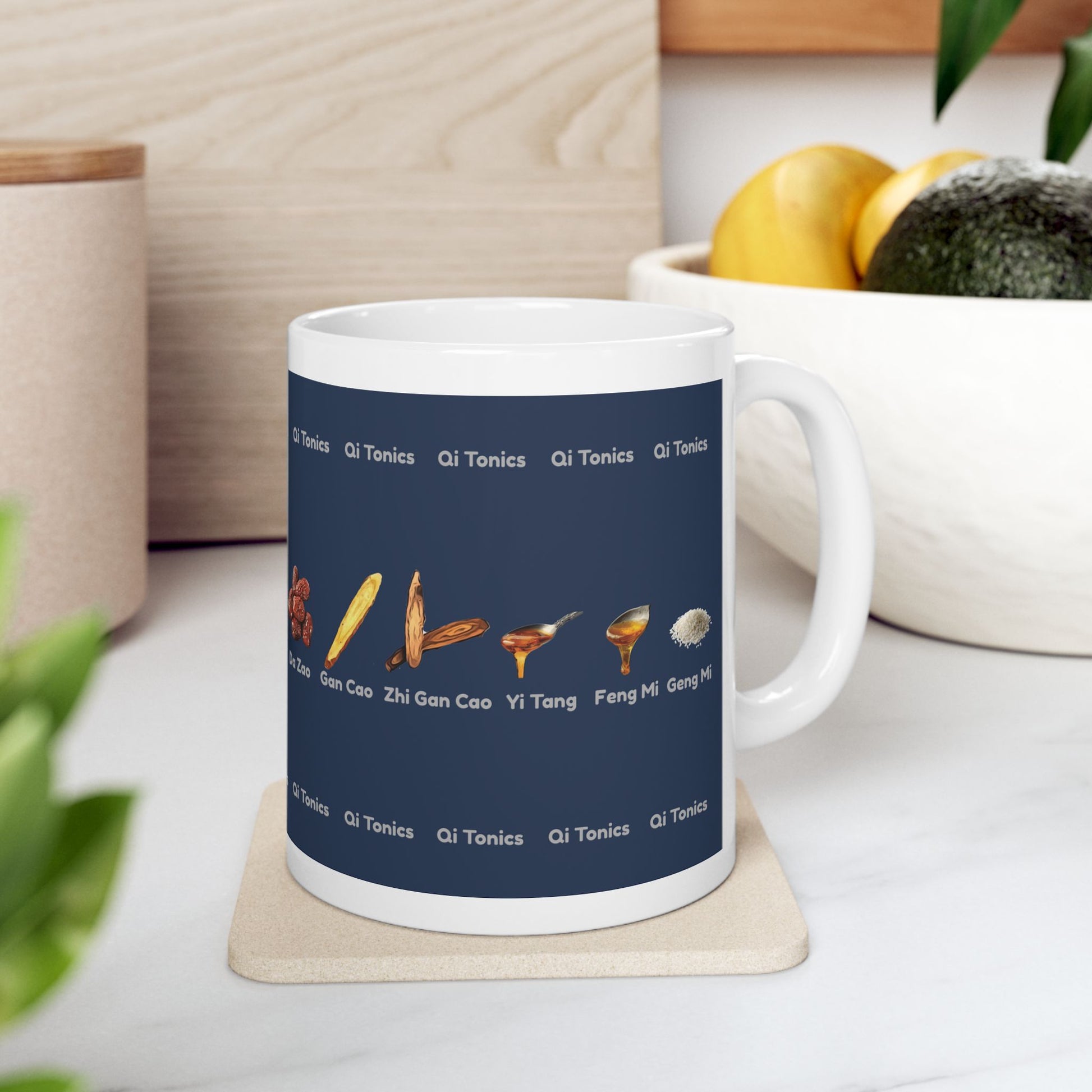 Meet the mug that's your personal cheer squad for vitality. Featuring color illustrations of qi boosting herbs from Traditional Chinese Medicine, including Ren Shen, Huang Qi, Da Zao, Gan Cao, and more!