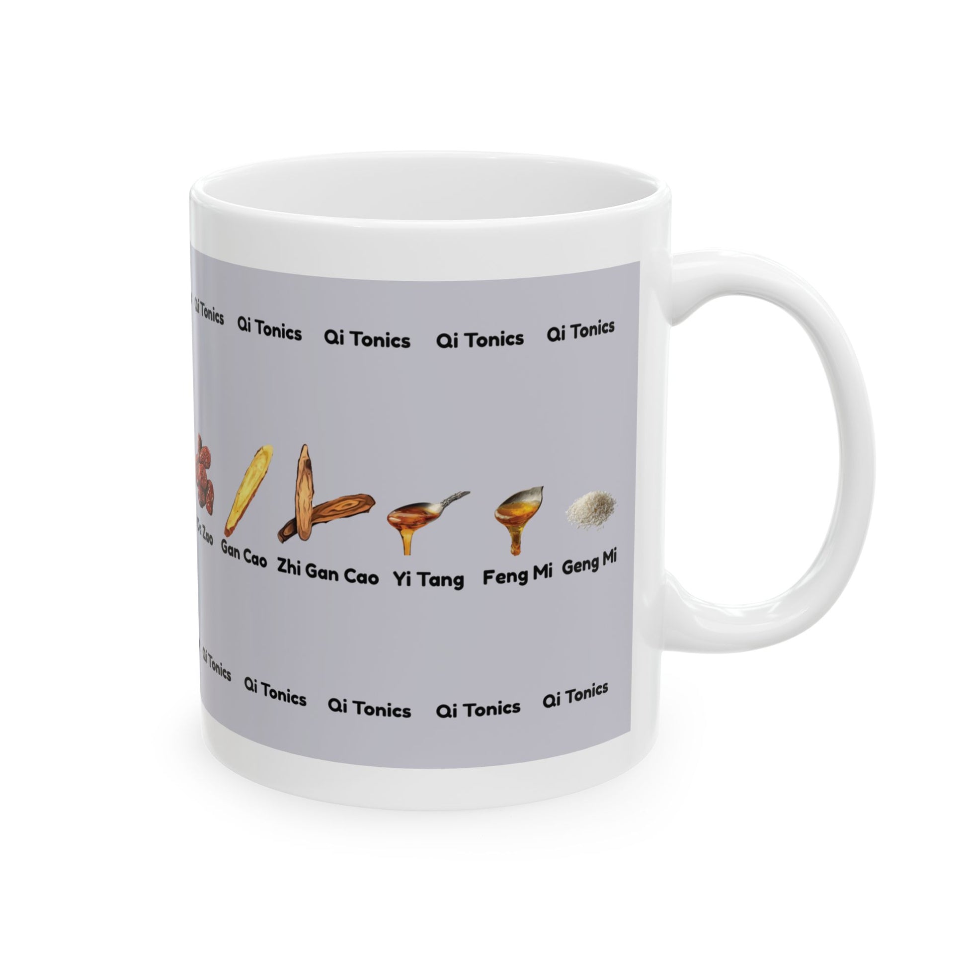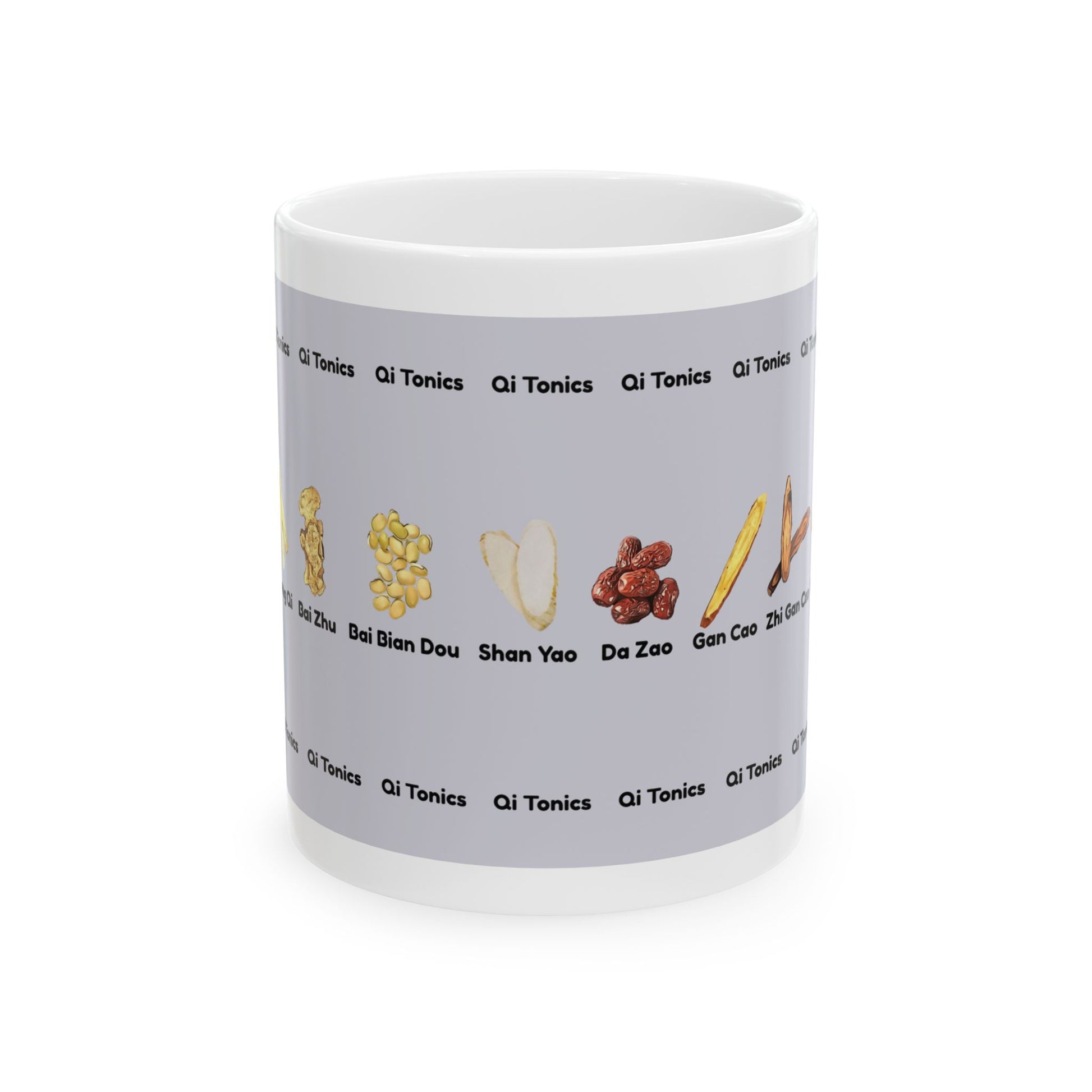 Meet the mug that's your personal cheer squad for vitality. Featuring color illustrations of qi boosting herbs from Traditional Chinese Medicine, including Ren Shen, Huang Qi, Da Zao, Gan Cao, and more!